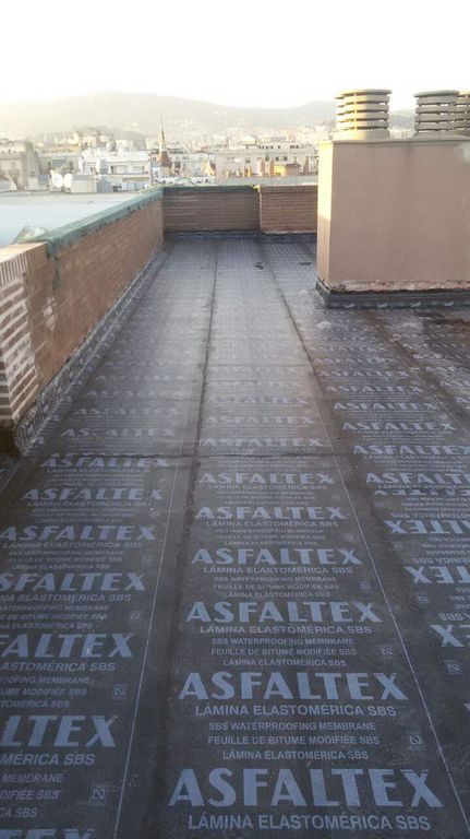 Un aislante muy usado en la impermeabilización de tejados, es el revestimiento elástico acrílico diluible en agua, que una vez aplicado mediante laminas de fibra de vidrio, formará una película de gran elasticidad y de alta resistencia mecánica y a los factores del clima, durante aproximadamente 25 años. También existe las laminas de tela asfáltica. Este material es empleado en impermeabilizaciones de terrados transitables. Consiste en un fieltro saturado en asfalto revestido con otra capa de asfalto mezclado con fibras de vidrio; de esta forma, forman un material altamente impermeabilizante de la cubierta, terraza o terrado.