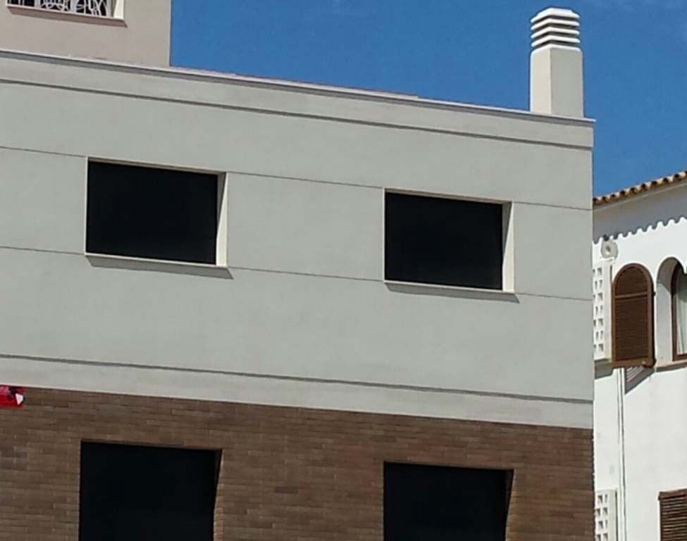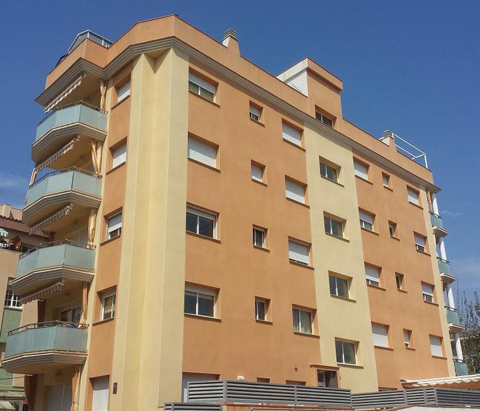 Nou 9, Sitges: Rehabilitación de fachada delantera con acabado en revestimiento liso y refuerzo balcones.
