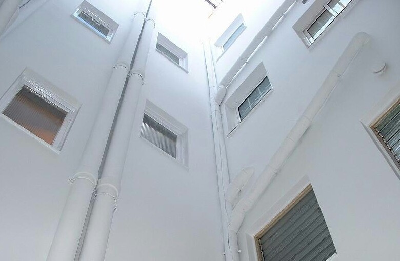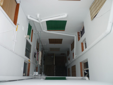 Assaonadors 18, Barcelona: Rehabilitación de tres patios de luces del edificio mediante verticales.